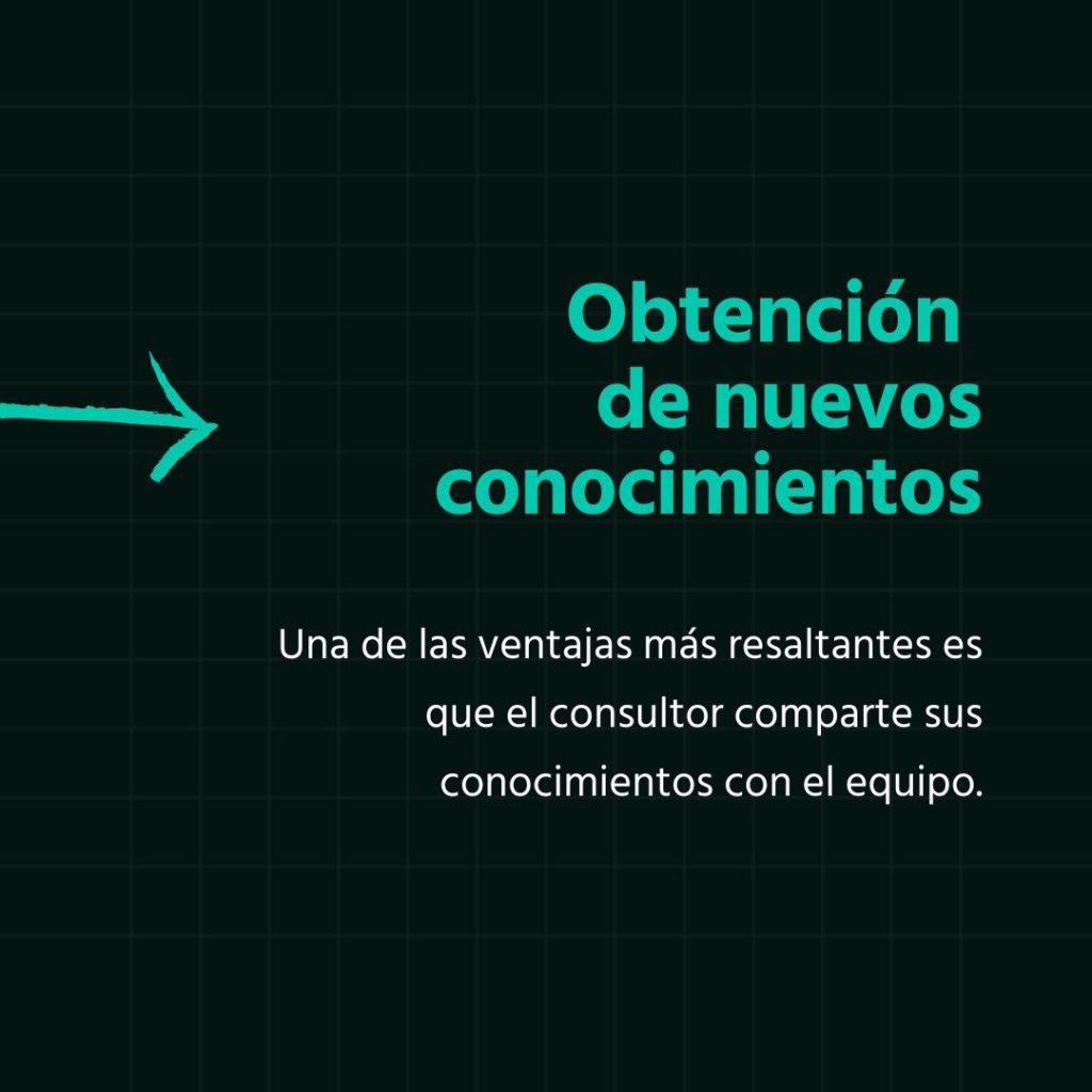 Una de las ventajas más resaltantes es que el consultor comparte sus conocimientos con el equipo. Ellos se encargan de guiar todo el proceso y resolver las dudas que puedan surgir. Se convierten en una guía para cada miembro y delega responsabilidades, durante el tiempo de ejecución del nuevo plan de marketing digital.